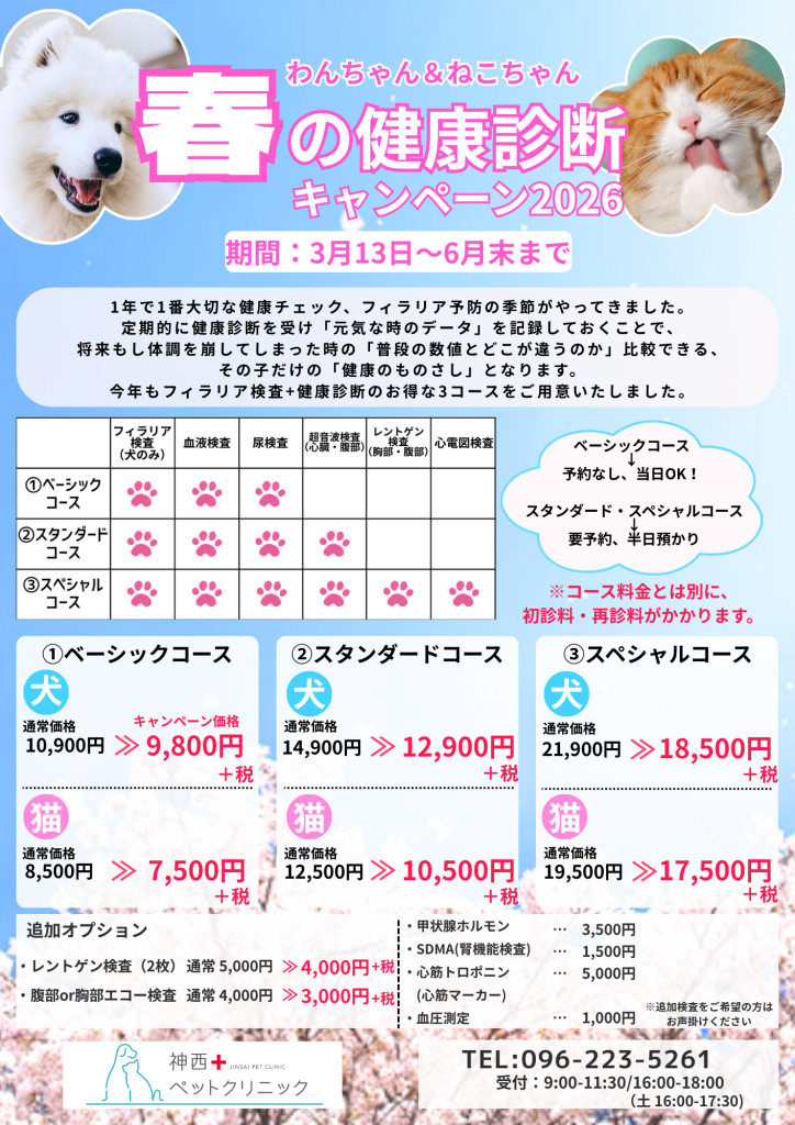【神西ペットクリニック 春の健康診断キャンペーン2026】が本日より始まりました。