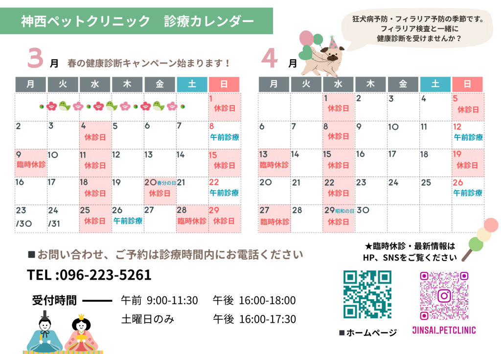 当院では、3月中旬からフィラリア検査と健康診断が同時に行える、春の健康診断キャンペーンを予定しています。